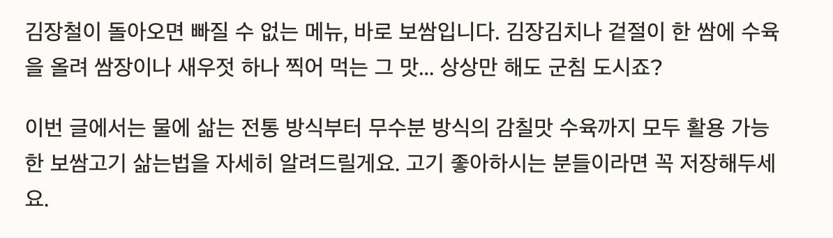 모두 활용 가능한 보쌈고기 삶는법을 자세히 알려드릴게요. 고기 좋아하시는 분들이라면 꼭 저장해두세요.