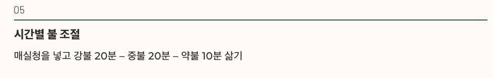 5. 매실청을 마지막에 넣고 50분간 불조절하며 삶기 (강불 20분 – 중불 20분 – 약불 10분)