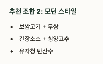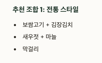 보쌈고기는 단품으로도 훌륭하지만 곁들이 음식과 함께할 때 그 진가가 드러납니다.