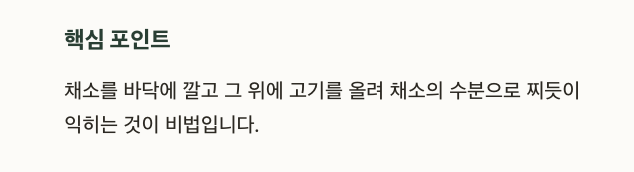 물을 넣지 않고 고기와 채소의 수분만으로 찌듯이 삶는 방법입니다.