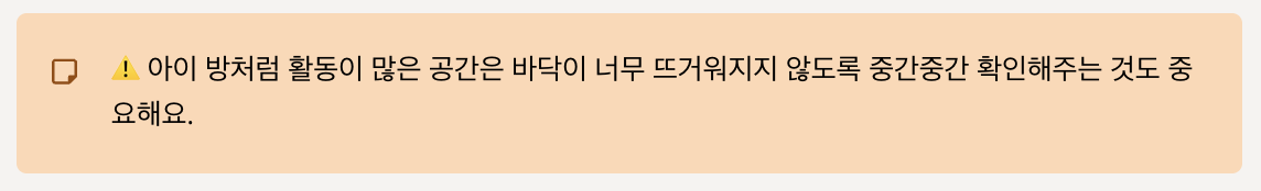 아이 방처럼 활동이 많은 공간은 바닥이 너무 뜨거워지지 않도록 중간중간 확인해주는 것도 중요해요.
