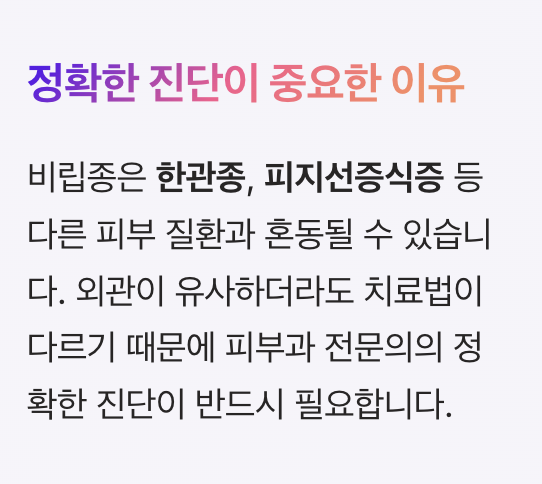 또한 한관종, 피지선증식증 등 다른 피부 질환과 혼동될 수 있기 때문에 정확한 진단이 중요합니다.