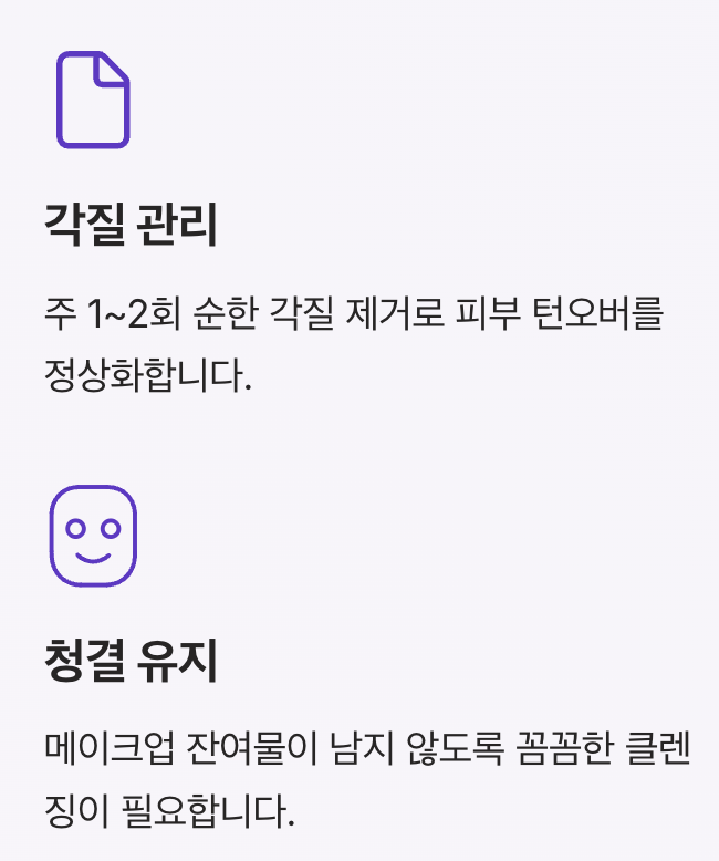 주 1~2회 정도 순한 각질 제거를 통해 피부 턴오버를 정상화하는 것이 중요합니다.