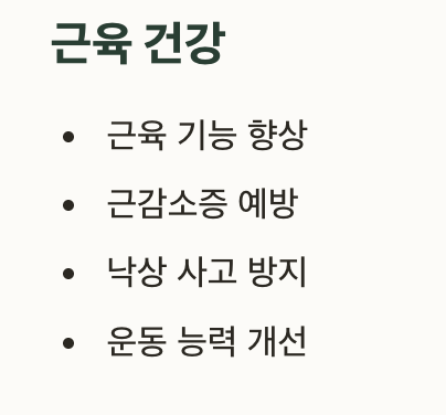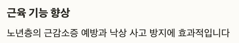 특히 노년층의 근감소증 예방, 낙상 사고 방지에 효과적이라는 연구가 많아요.