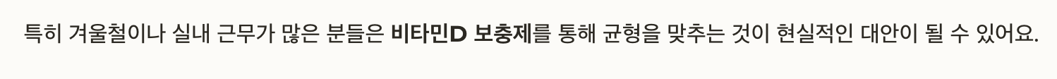 특히 겨울철이나 실내 근무가 많은 분들은 비타민D 보충제를 통해 균형을 맞추는 것이 현실적인 대안이 될 수 있어요.