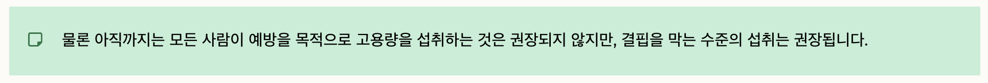 물론 아직까지는 모든 사람이 예방을 목적으로 고용량을 섭취하는 것은 권장되지 않지만, 결핍을 막는 수준의 섭취는 권장됩니다.