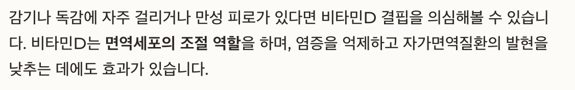 감기나 독감에 자주 걸리거나 만성 피로가 있다면 비타민D 결핍을 의심해 볼 수 있습니다.