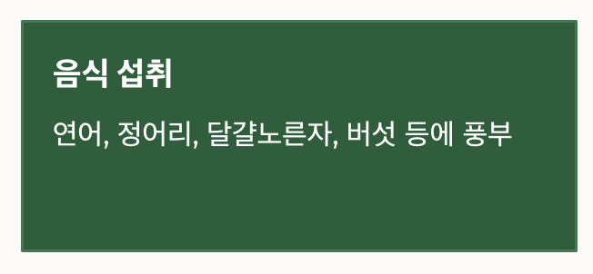 음식 섭취 연어, 정어리, 달걀노른자, 버섯 등에 풍부