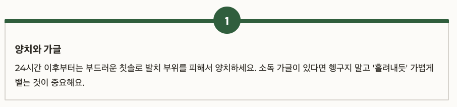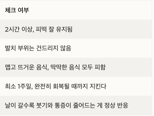 - 냉찜질: 첫날은 얼음찜질로 붓기를 예방하세요.