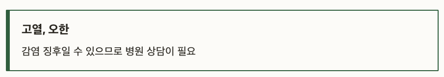 | 고열, 오한 | 감염 징후일 수 있으므로 병원 상담이 필요 |