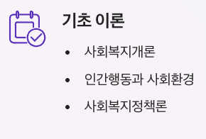| 필수 과목 | 사회복지 전공 과목 이수 |