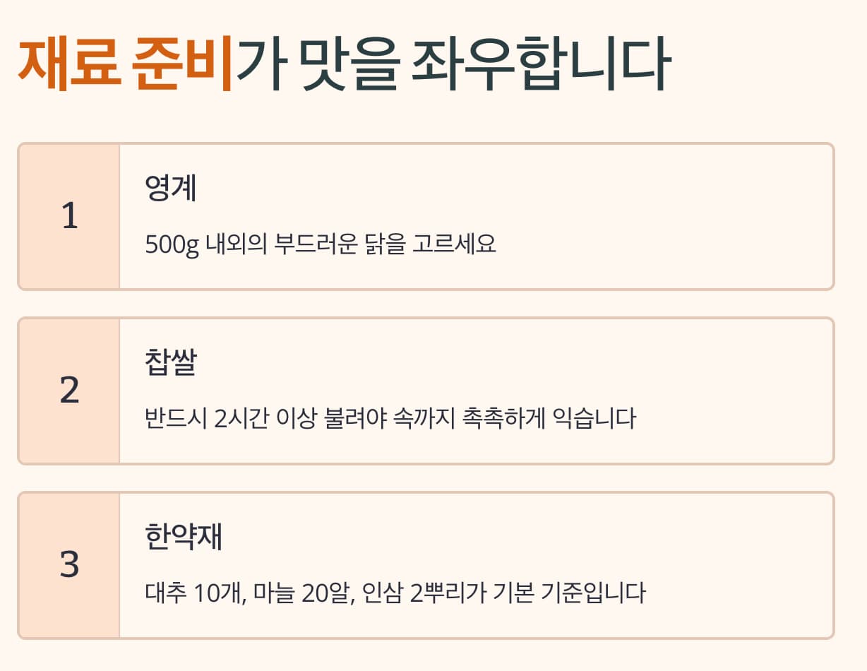 삼계탕의 핵심은 바로 재료입니다.