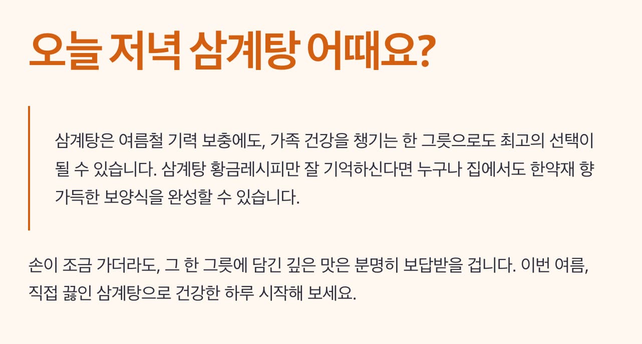 이번 여름, 직접 끓인 삼계탕으로 건강한 하루 시작해 보세요.