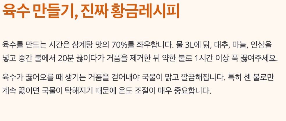삼계탕 황금레시피 공개 부드럽고 진한 보양식