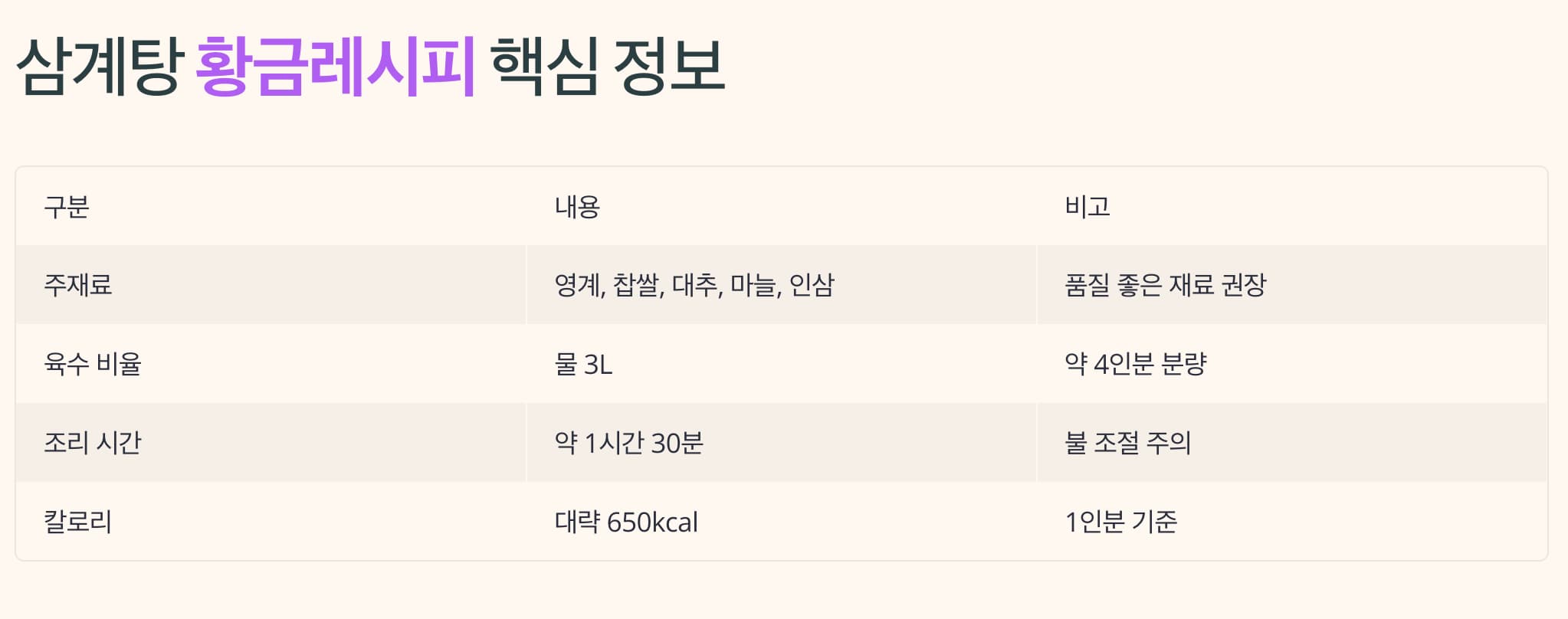 최고의 선택이 될 수 있습니다. 삼계탕 황금레시피만 잘 기억하신다면