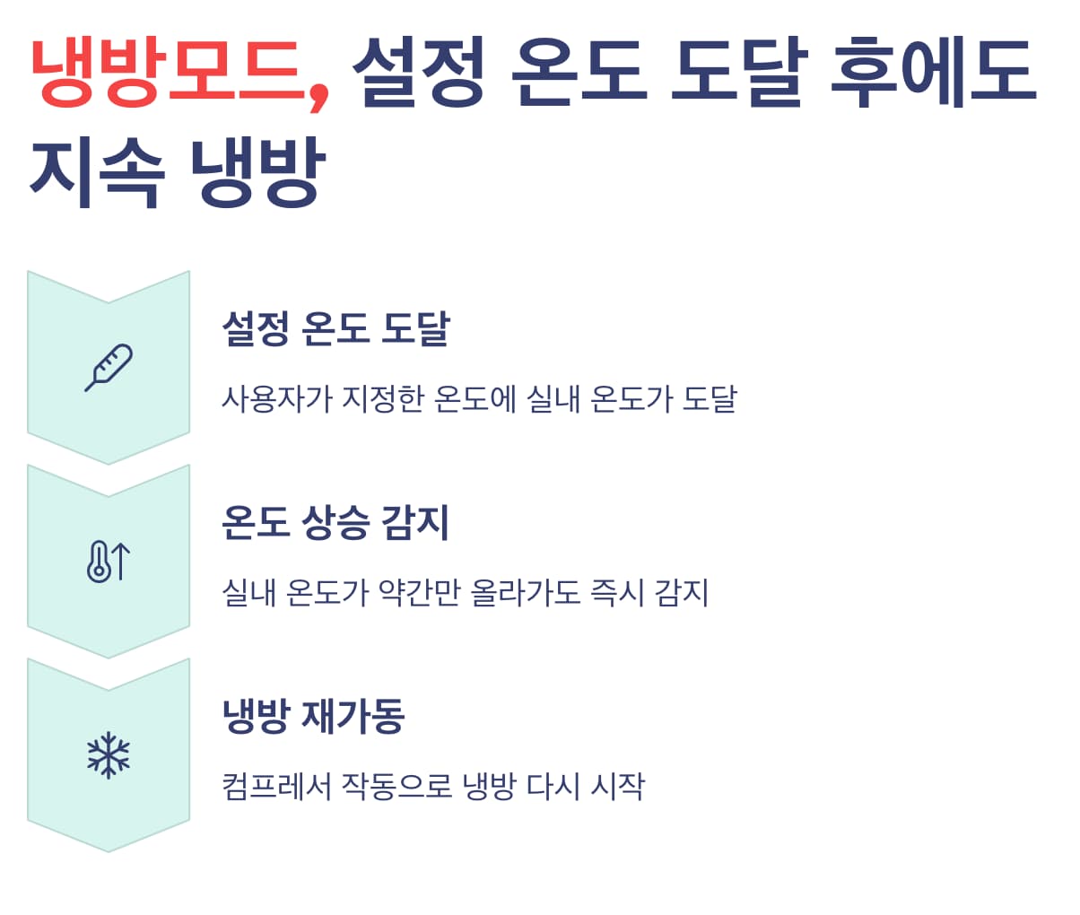 냉방모드는 사용자가 설정한 온도에 도달하더라도 실내 온도가