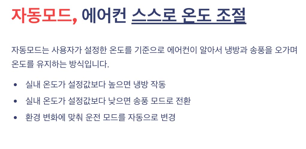 자동모드는 사용자가 설정한 온도를 기준으로 에어컨이 알아서