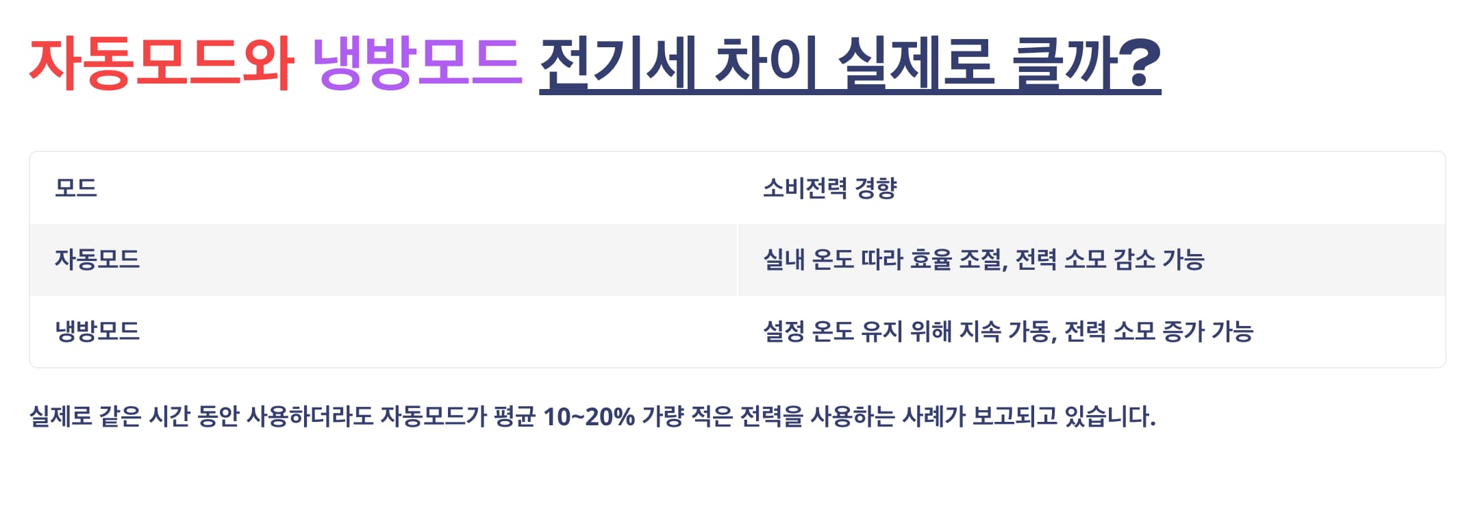 이번 글에서는 자동모드와 냉방모드의 차이, 전기세에 미치는 영향,