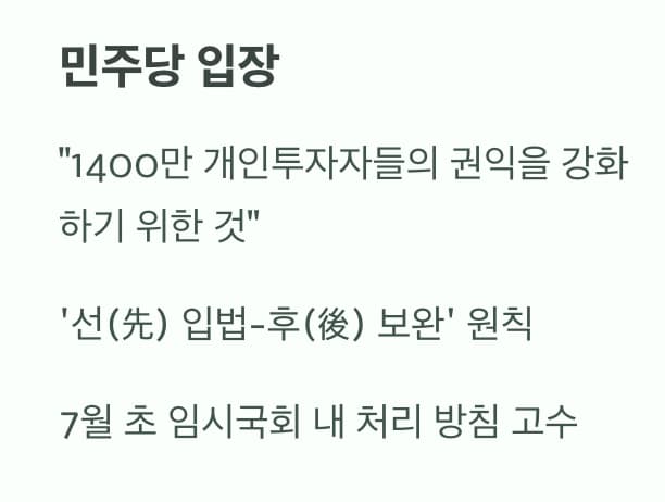 민주당은 “1400만 개인투자자들의 권익을 강화하기 위한 것”이라며