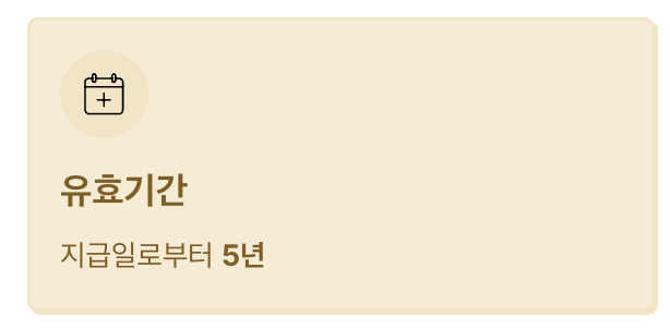 즉, 환급받은 날짜 기준으로 딱 5년 동안만 사용할 수 있고, 이후에는 자동으로 소멸됩니다.