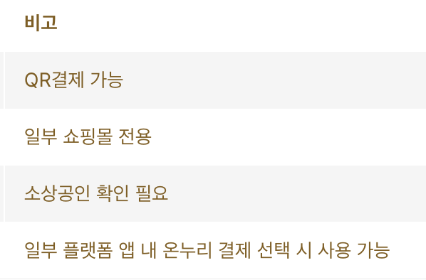 | 온라인 쇼핑몰 | 온누리전통시장, 위메프 등 | 일부 쇼핑몰 전용 |