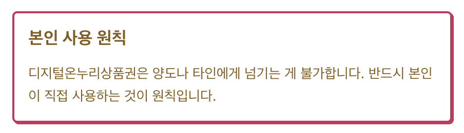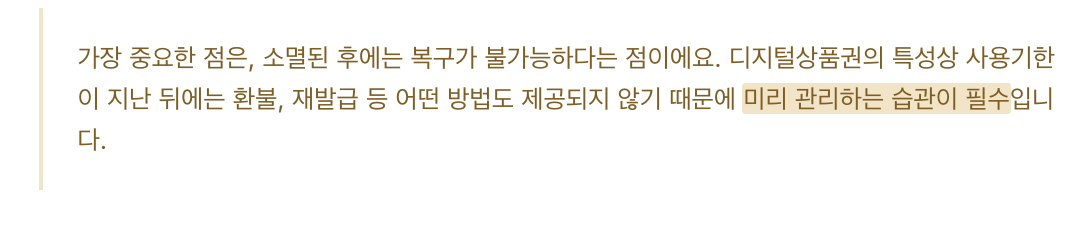 디지털상품권의 특성상 사용기한이 지난 뒤에는 환불, 재발급 등 어떤 방법도 제공되지 않기 때문에 미리 관리하는 습관이 필수입니다.