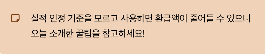 키오스크로 카드 결제를 하면 일부가 실적에서 제외되는 경우가 있습니다. 가능하다면 직원에게 직접 요청해 포스기로 결제하면 안전하게 실적으로 인정됩니다. 작은 차이가 쌓여 환급 금액으로 이어지는 만큼 습관을 들여보시는 게 좋습니다.
