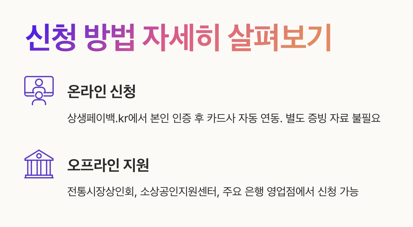 상생페이백 30만원 신청방법은 온라인과 오프라인 모두 편리하게 제공되고 있습니다.