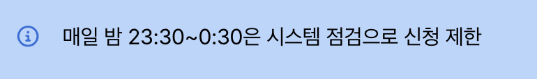 단, 매일 밤 23시 30분부터 0시 30분까지는 시스템 점검으로 신청이 제한됩니다.