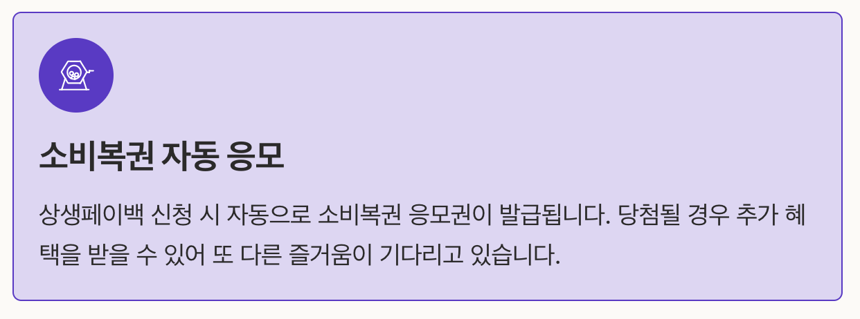 상생페이백 신청 시 자동으로 소비복권 응모권이 발급됩니다.
