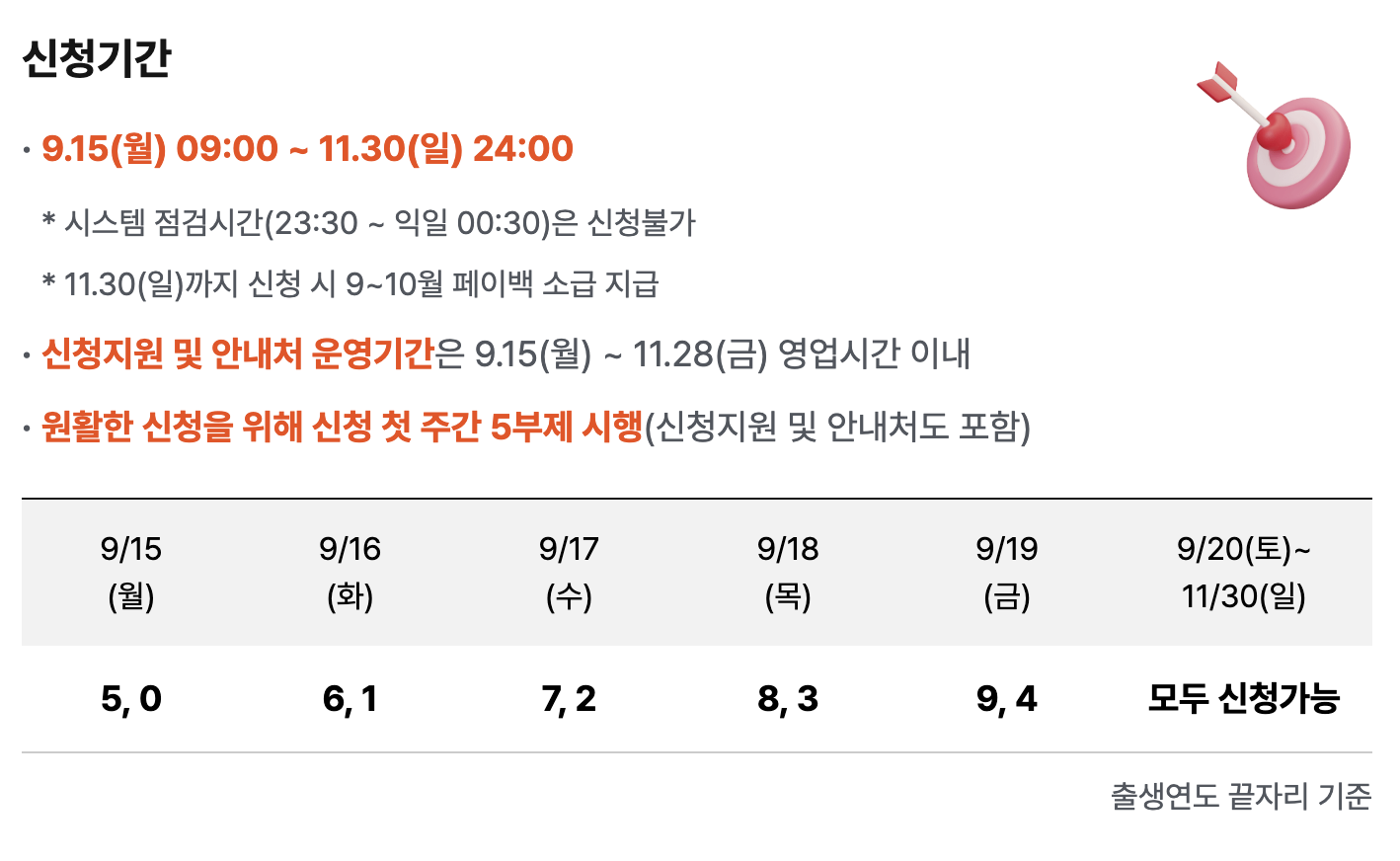 신청은 2025년 9월 15일 오전 9시부터 11월 30일 자정까지 가능합니다.