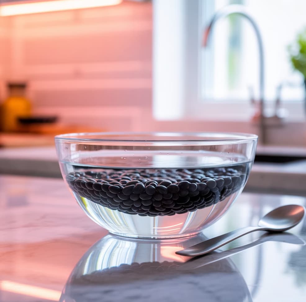 서리태를 콩물로 만들 때 첫 단계는 충분한 불림입니다.