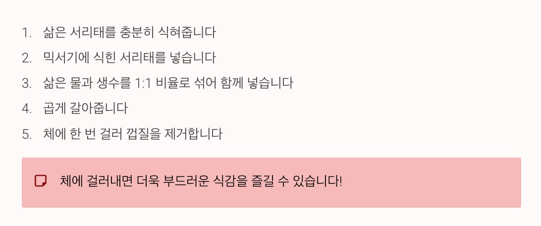 체에 걸러 부드러운 식감을 내는 것이 핵심입니다.