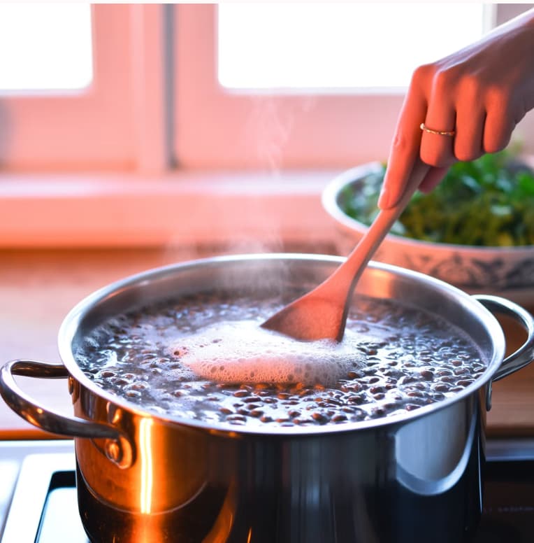 물이 팔팔 끓은 상태에서 불린 서리태를 넣고,