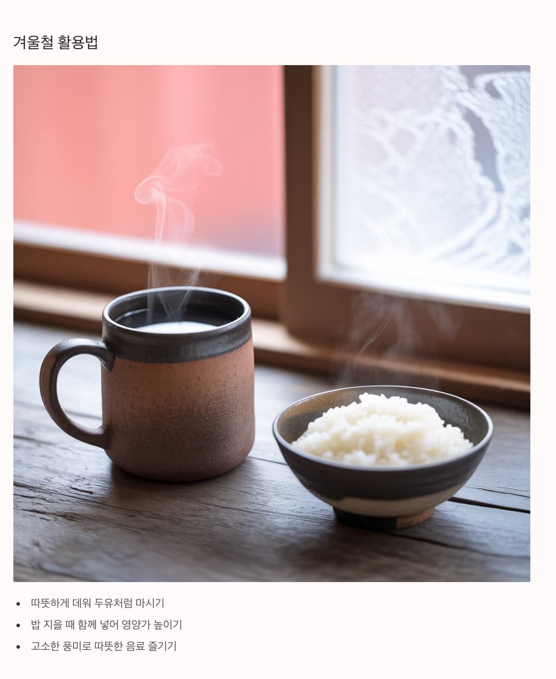겨울철에는 따뜻하게 데워 두유처럼 즐기면 좋습니다.