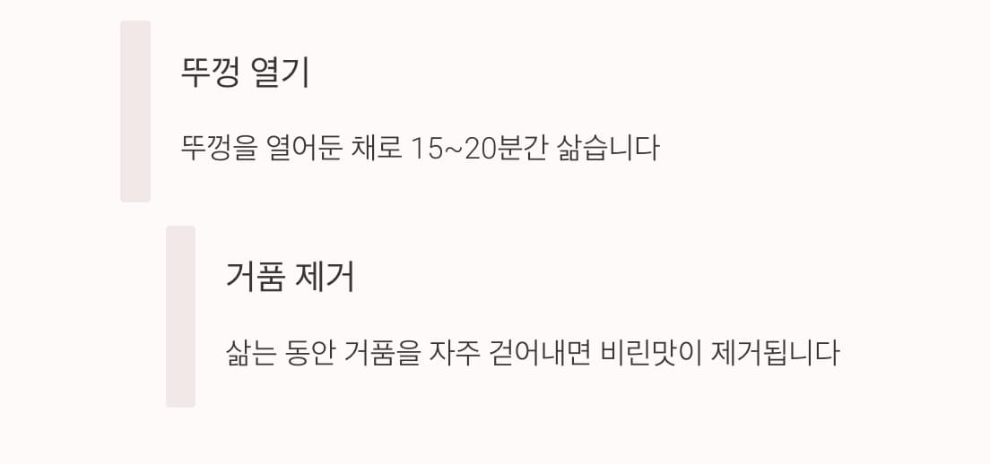 뚜껑을 열어둔 채 15~20분간 삶습니다.