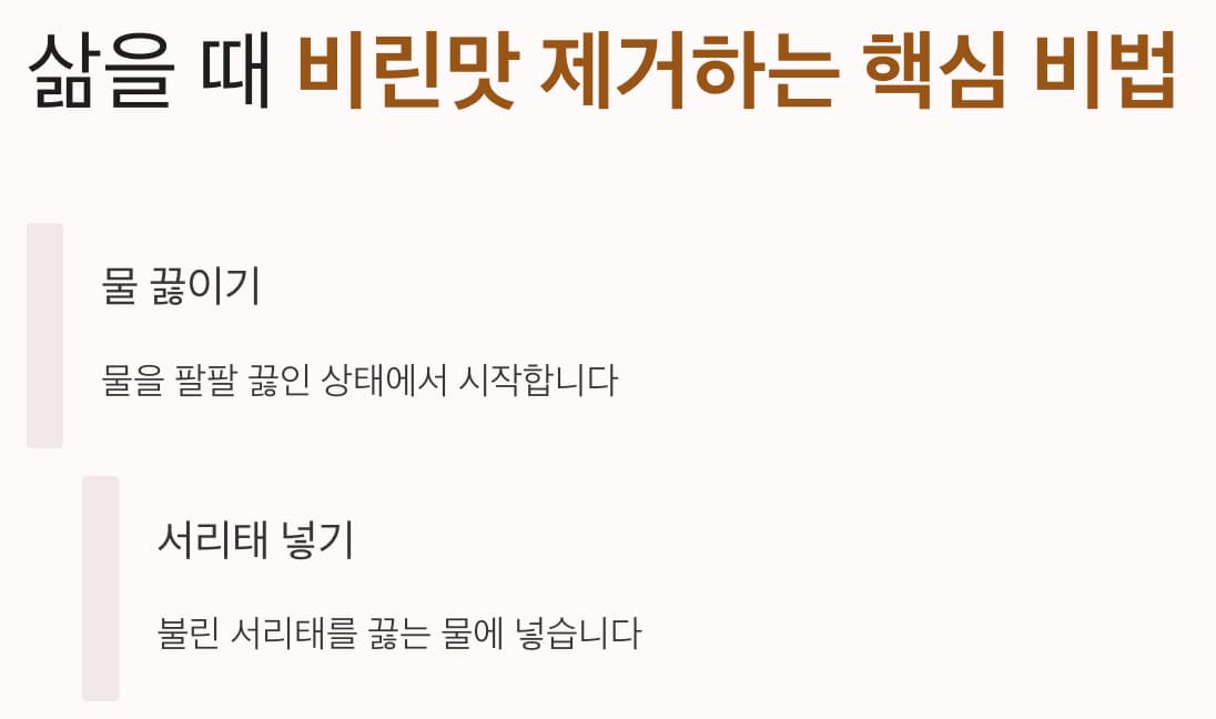비린맛 제거를 위해 끓는 물에서 삶고,