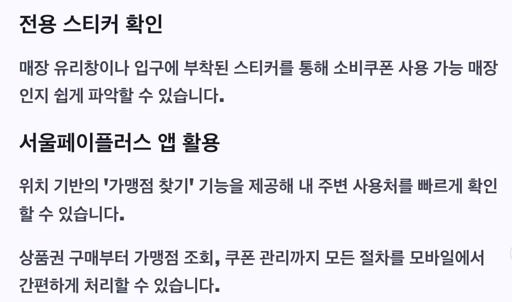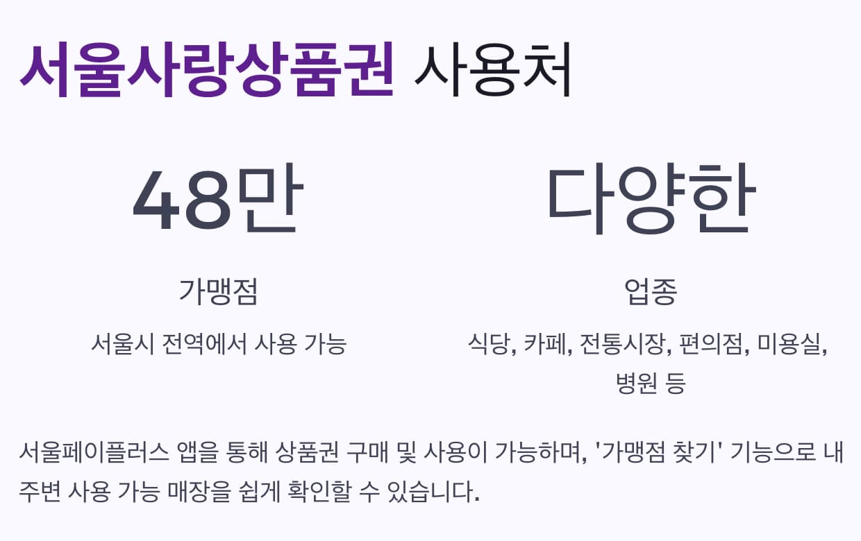 서울페이플러스 앱을 통해 상품권 구매 및 사용이 가능하며,