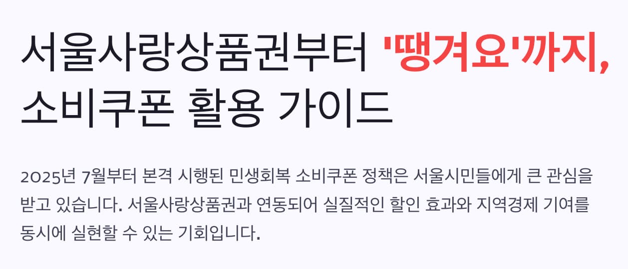 서울사랑상품권부터 '땡겨요'까지, 소비쿠폰을 제대로 활용하려면?