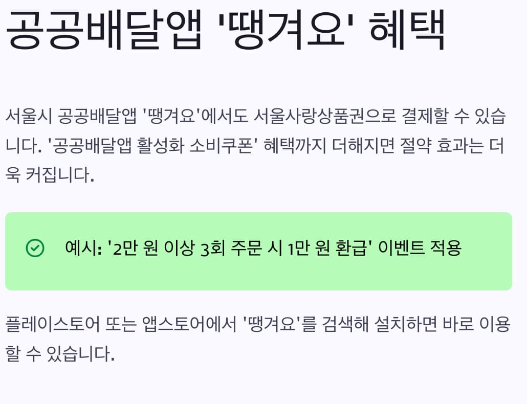 서울시에서 운영하는 공공배달앱 '땡겨요'에서도