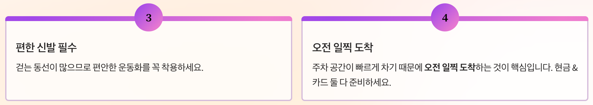 - 주말은 매우 혼잡 → 평일 방문 추천
