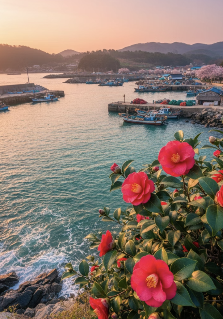 붉게 피어나는 동백꽃과 제철을 맞은 알배기 주꾸미를 동시에 즐길 수 있는,