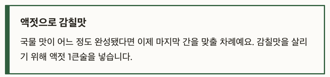 | 감칠맛 | 액젓 1큰술만으로 충분 |