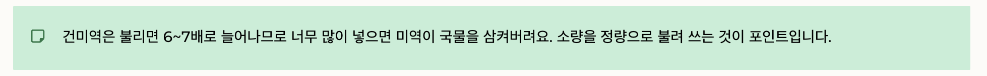 너무 많이 넣으면 미역이 국물을 삼켜버려요.