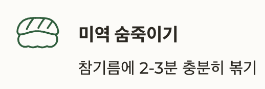 | 미역 숨죽이기 | 참기름에 2~3분 충분히 볶기 |
