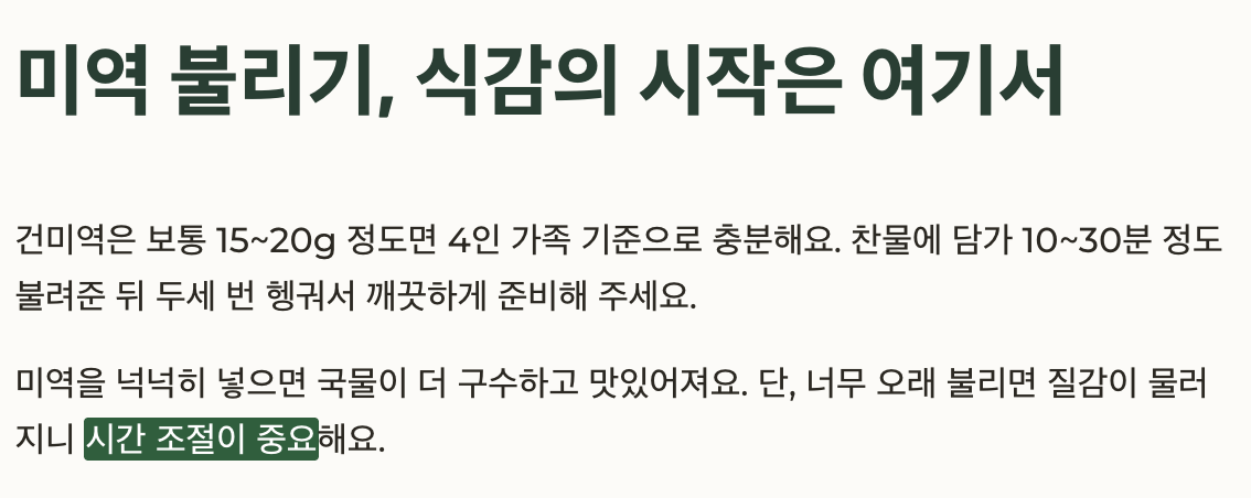 고기가 질기지 않고 미역도 부드러워지려면