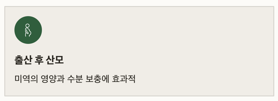 | 출산 후 산모 | 미역의 영양과 수분 보충에 효과적 |