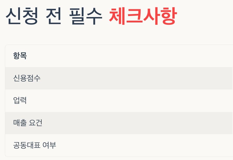 기본 자격은 NICE 신용점수 595점부터 839점 구간, 업력 1년 이상,