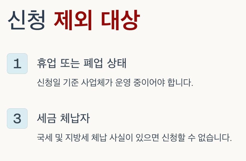 신청일 기준 휴업 또는 폐업 상태이거나,