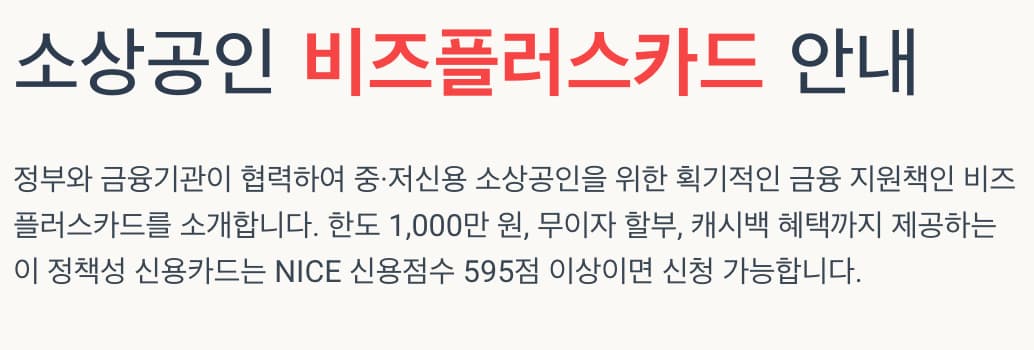 획기적인 금융 지원책, 소상공인 비즈플러스카드를 선보였습니다.